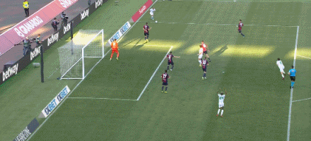 第45+1分钟,马伦助攻,艾纳维抢点破门,博洛尼亚0-2罗马